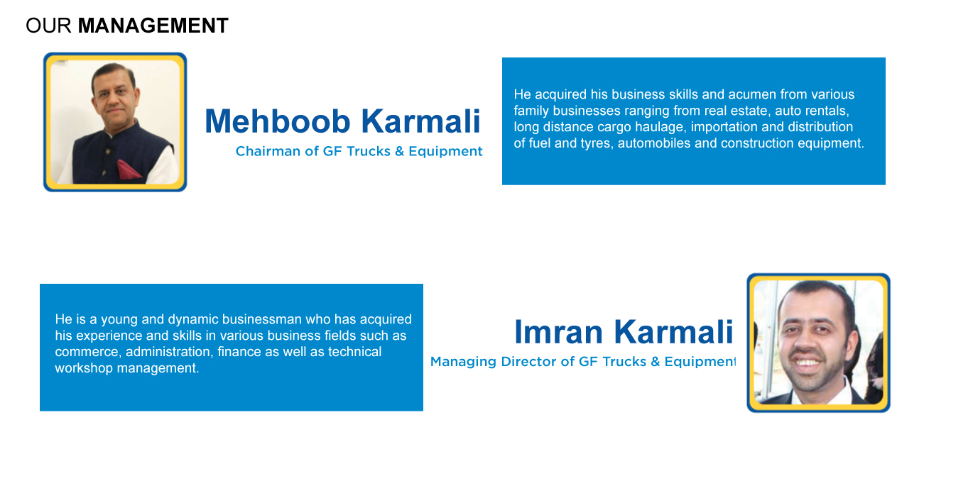 GF Trucks & Equipment was established in 2007 by the Karmali family who have been prominent and successful businessmen in Tanzania since 1931.GF Trucks & Equipment started its operations with 2 franchises.